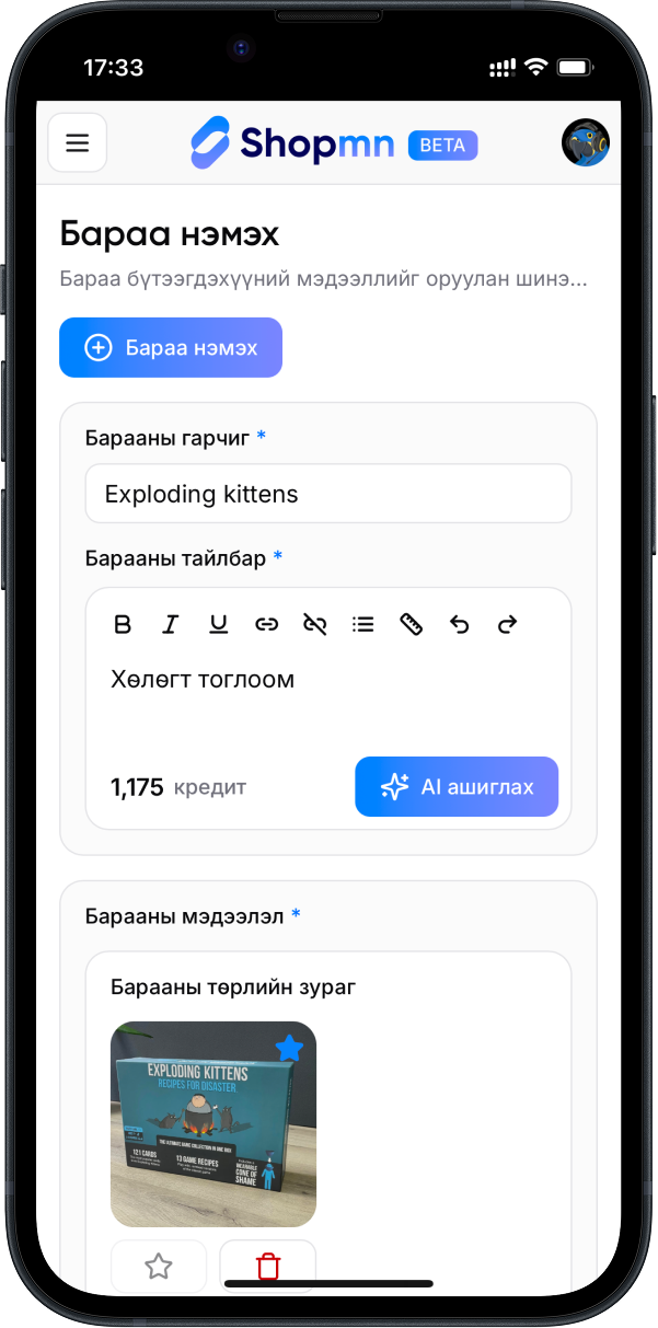 Өөрийн дэлгүүрийн зарах бараагаа хялбархан нэмэх боломжтой.