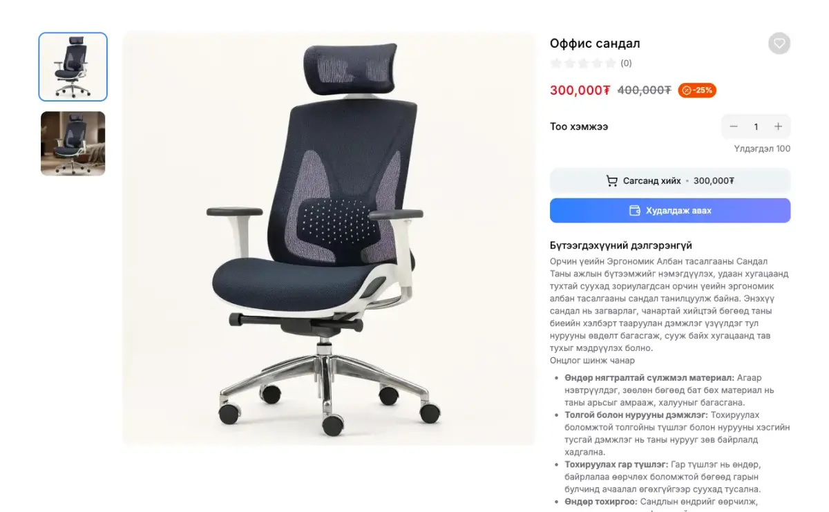 Жишээ нь та доорх оффис сандлыг зарж байгаа гээд төсөөлье.